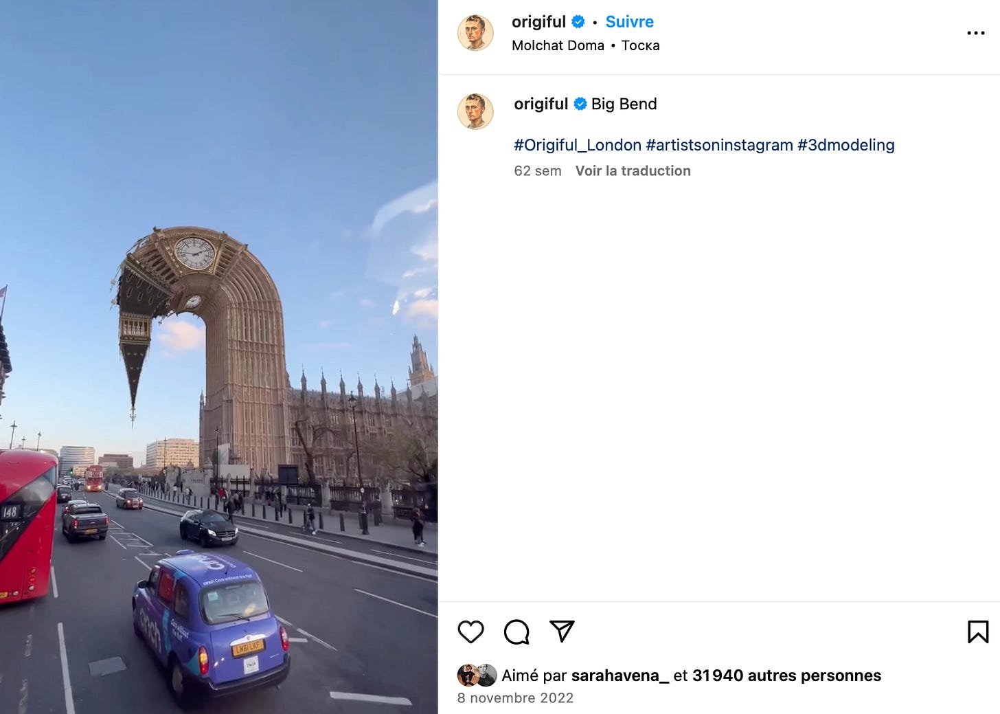 Illustration par l'exemple : Le “fake OOH” (Out Of Home) est une technique publicitaire utilisant la CGI (imagerie générée par ordinateur) pour créer des vidéos hyper réalistes. Ces vidéos, qui semblent intégrées dans des environnements extérieurs, vivent en réalité en ligne, mêlant fiction et réalité et transformant ainsi la narration visuelle.